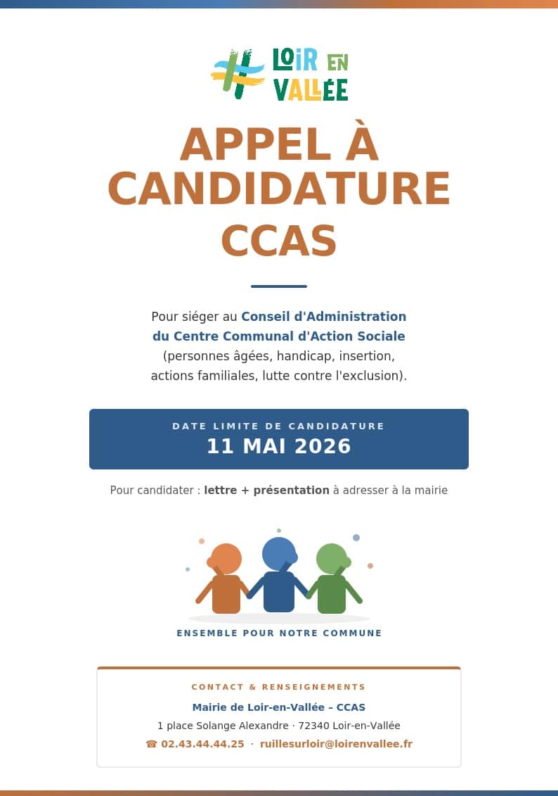 Appel à candidatures – CCAS de Loir-en-Vallée 🤝