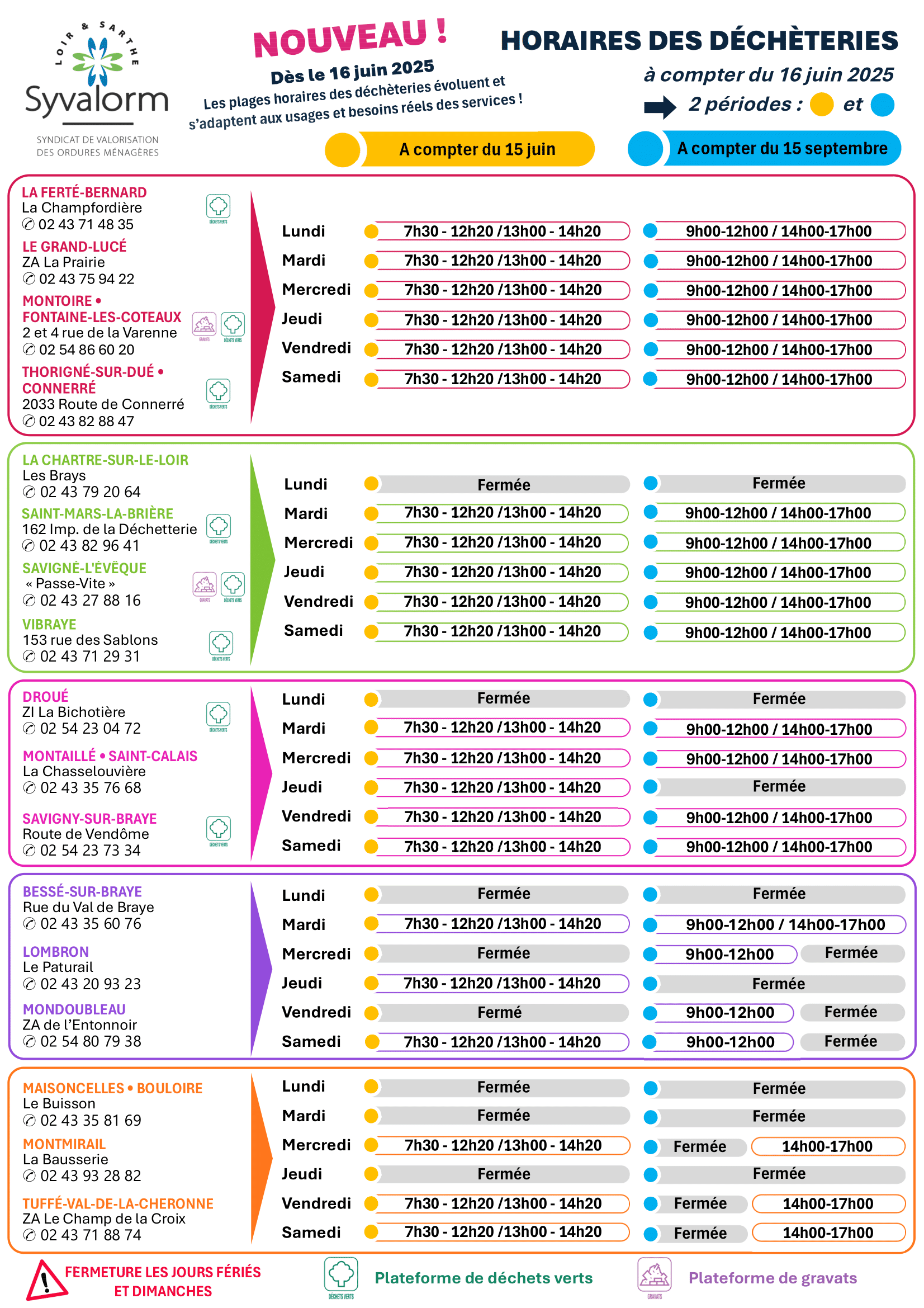 Le SYVALORM réorganise ses horaires et jours d'accès en déchèteries à compter du lundi 16 juin 2025.